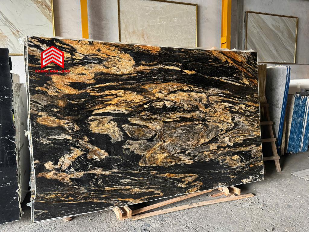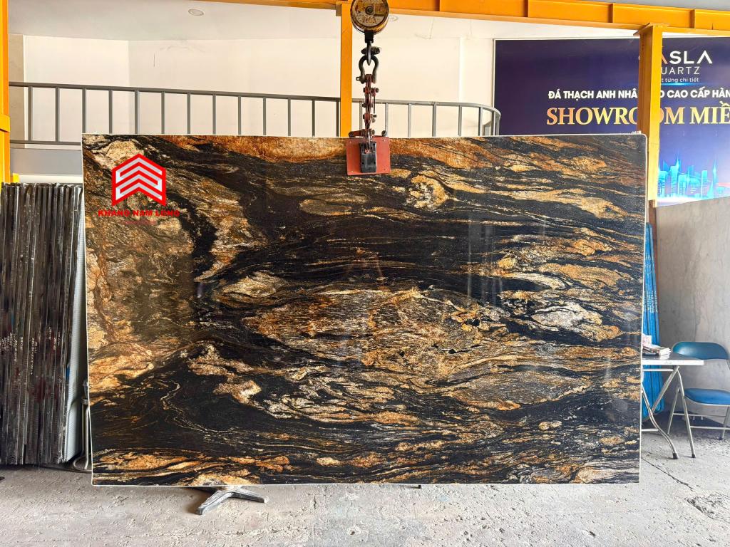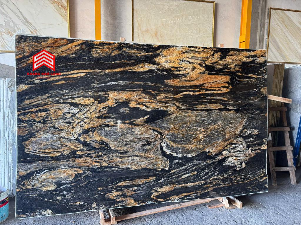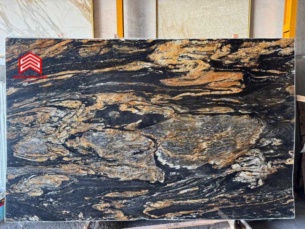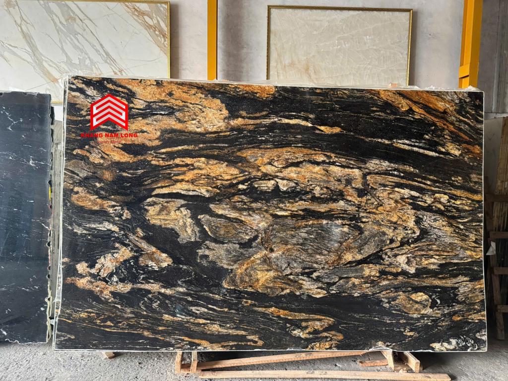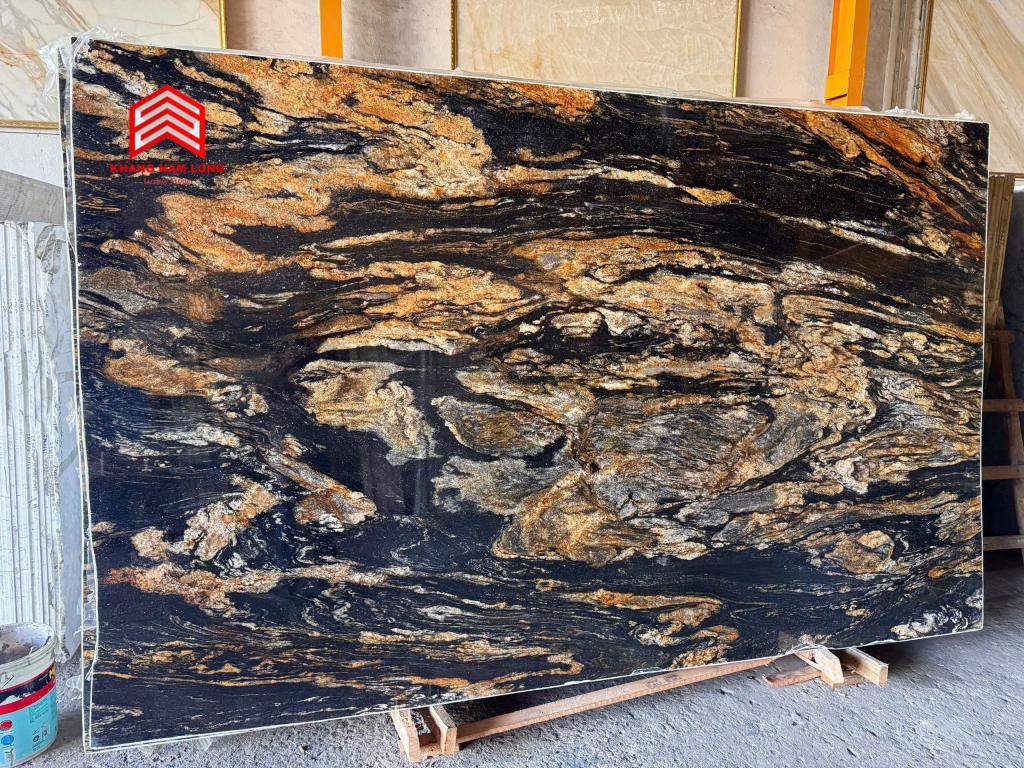 Magma Gold là một loại đá độc đáo và mang tính nghệ thuật cao, thực sự là có một không hai. Đây là loại đá granite đen cao cấp được khai thác từ các mỏ đá ở Brazil, với những đường vân vàng óng ánh, tạo nên sự tương phản màu sắc tuyệt đẹp. Đá granite Magma Gold tạo ấn tượng mạnh mẽ khi được sử dụng làm mặt bàn bếp, mặt bàn trang điểm phòng tắm, ốp tường bếp, viền lò sưởi, lát sàn hoặc mặt bàn bếp ngoài trời.